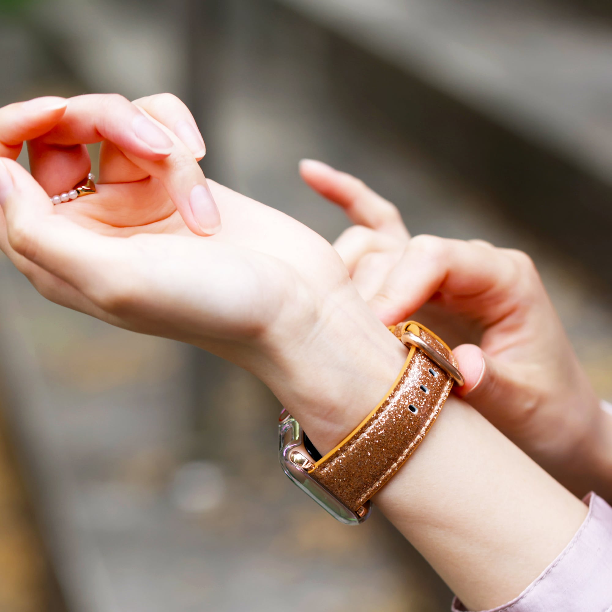 手元に大人可愛いきらめき、グリッターバンド♡